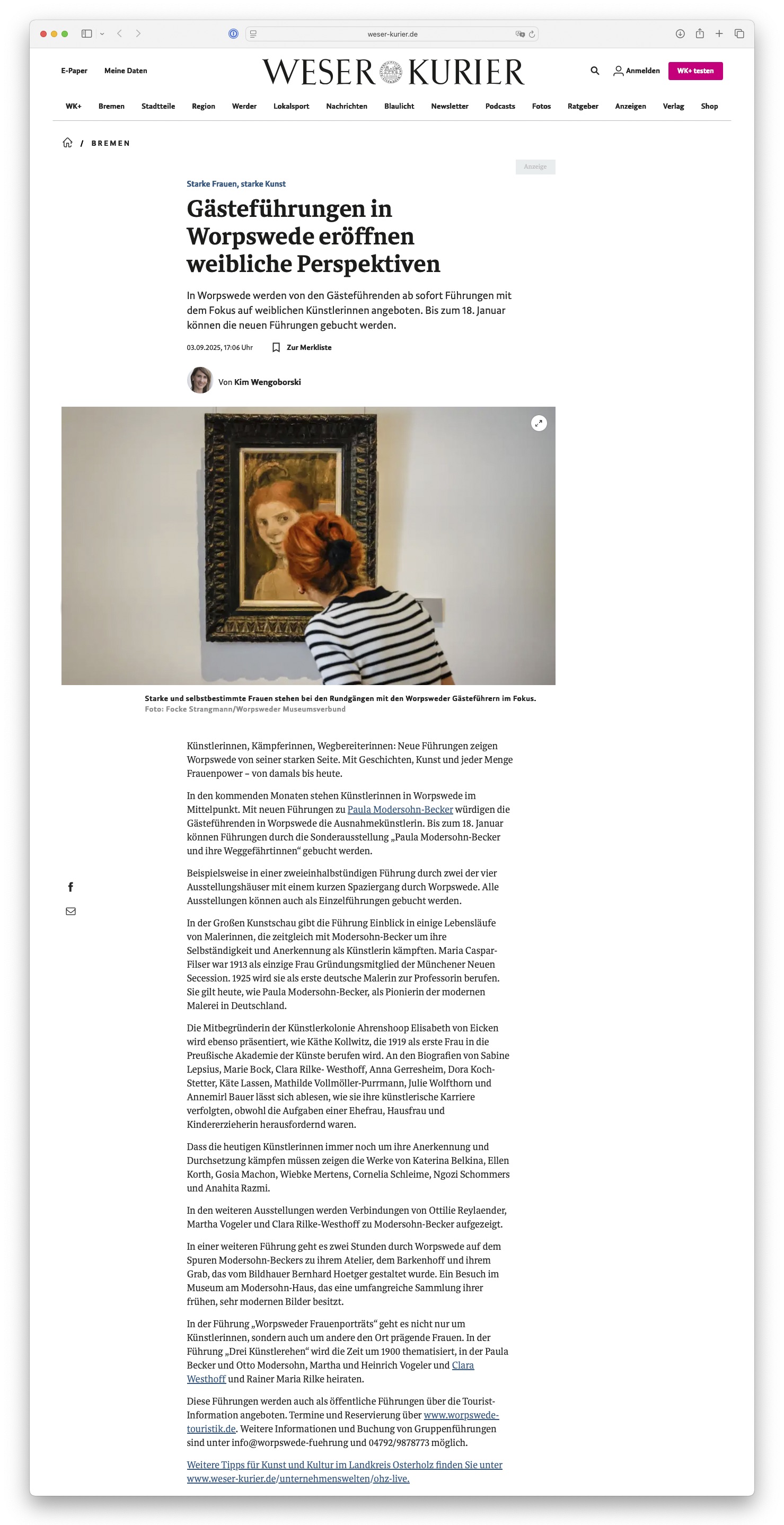 Kim Wengoborski, Weser Kurier, September 3, 2025